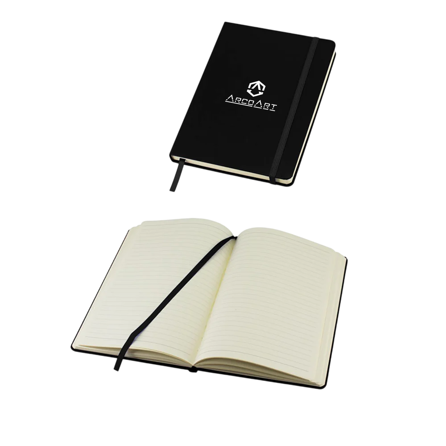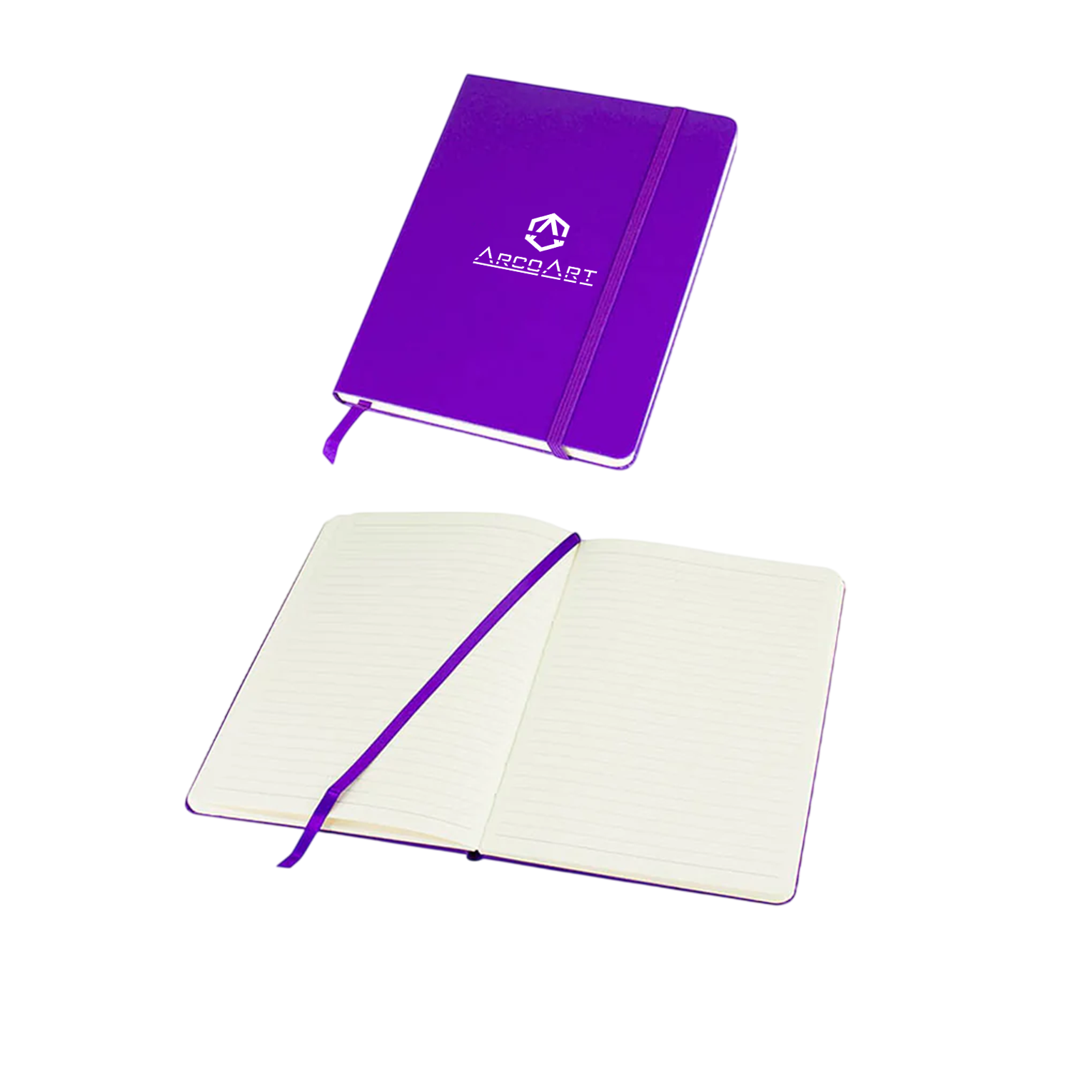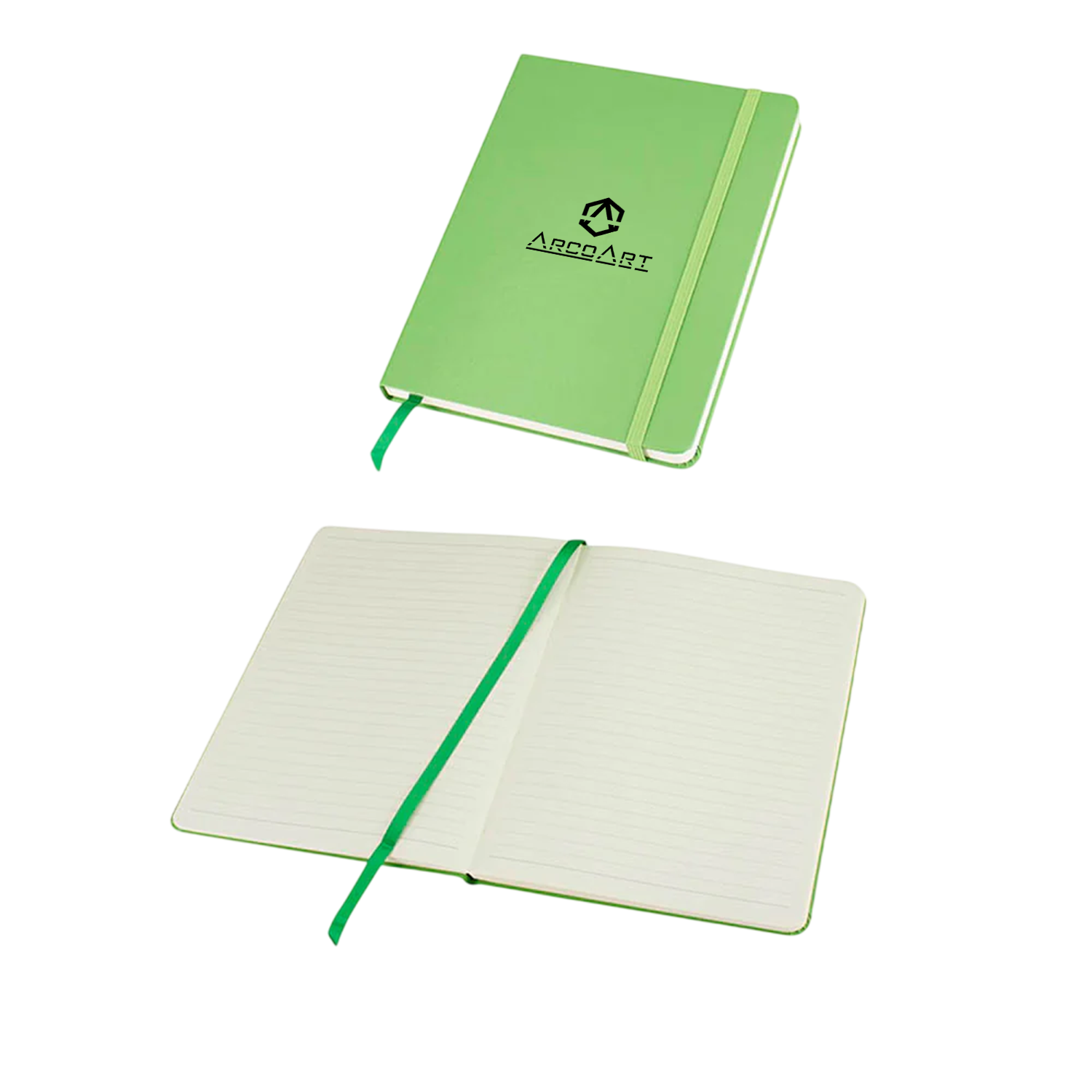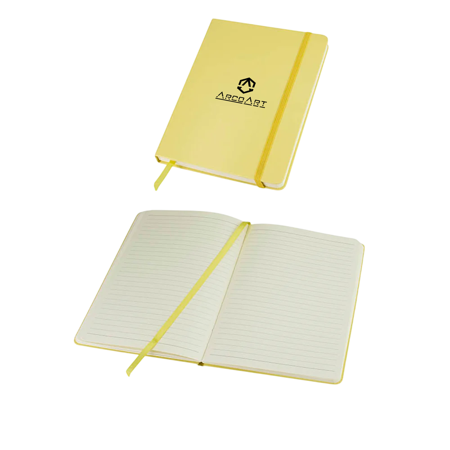 Cuaderno Colorskine tamaño A5 con diseño elegante y cubierta tipo simil cuero en PU. Incluye 80 hojas lineadas amarillas de 80 gsm, banda elástica de cierre y huincha separadora al tono. Ideal para oficina, estudios o como regalo corporativo personalizable con logo.
